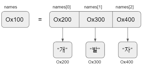 String[] names = {"개", "발", "자"};